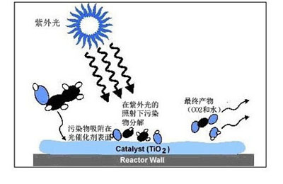 凈化裝置由初過(guò)濾單元、紫外線燈、鎮(zhèn)流器、催化板(TiO2)等部件組成。