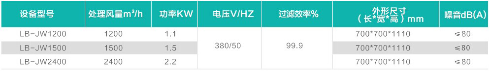 三、LB-JW型焊接煙塵凈化器技術(shù)參數(shù)