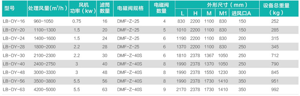 三、布袋除塵器一體機(jī)規(guī)格表